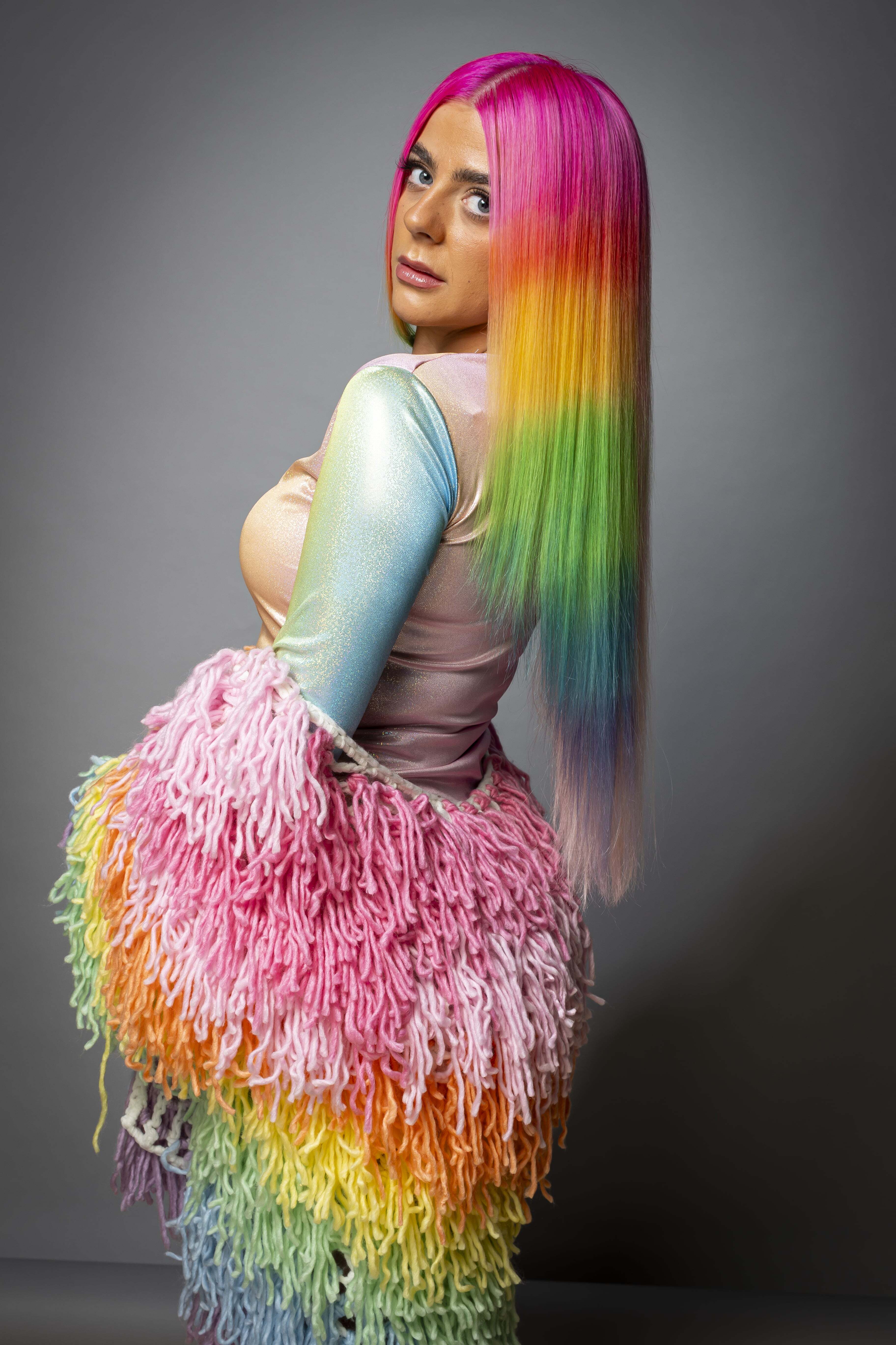 Brought to life with a masterful touch, Ruth’s clever use of Carnation Pink, Apricot, Bright Daffodil, Fluorescent Green, Pastel Blue and Wisteria resulted in a technicolour triumph fit for Directions Ambassador Lauren (@vanitydollcolour).