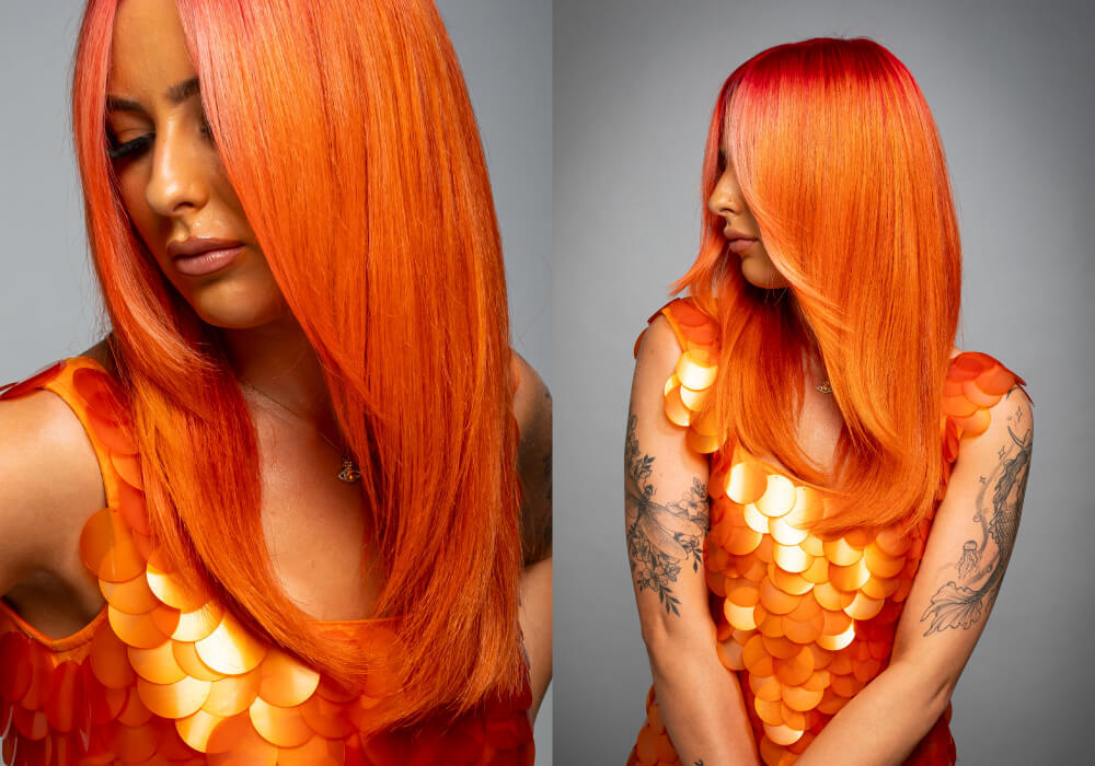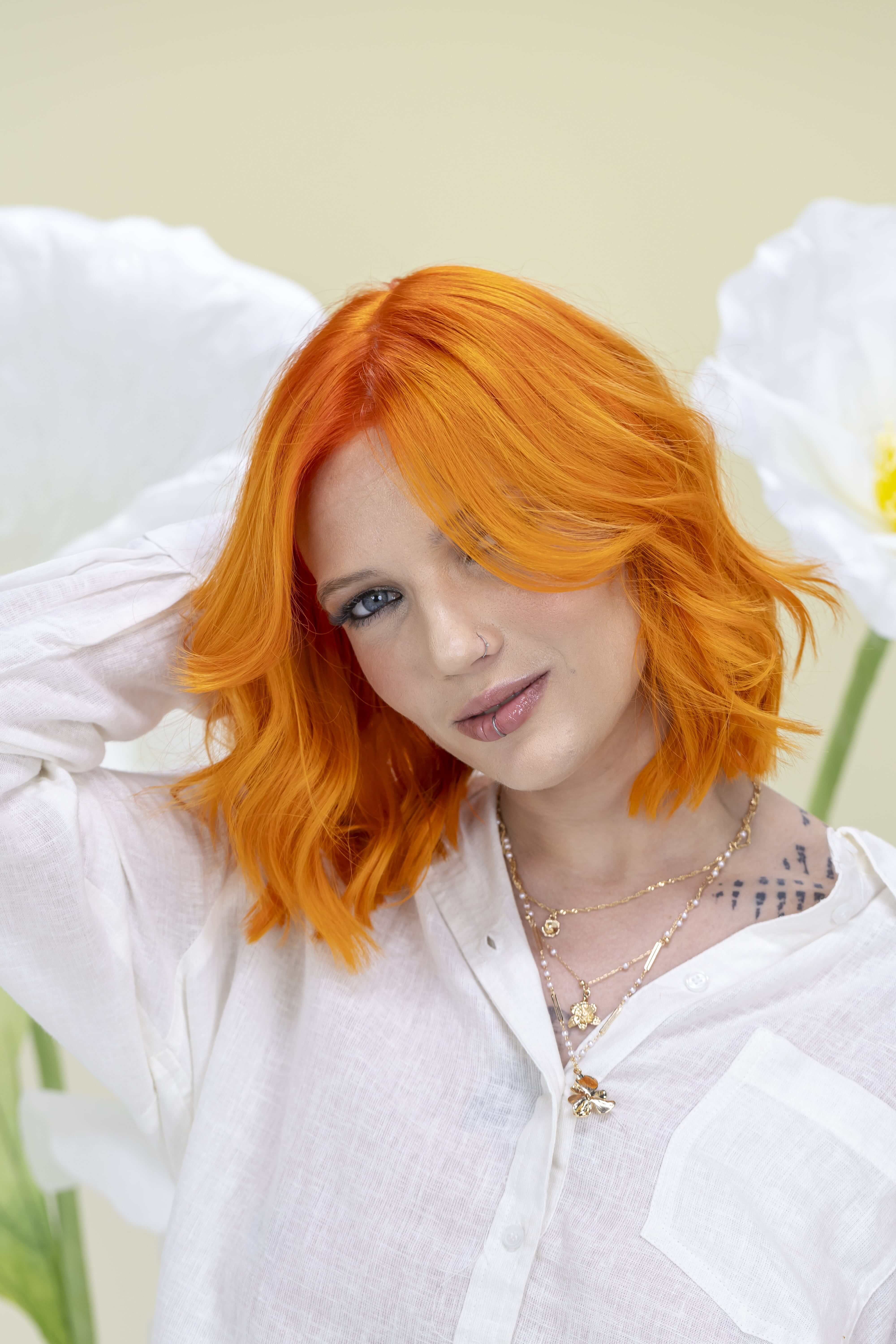 Our striking orange look, Amber Bloom, was created by the amazing Amy Woods, colour expert and stylist at Orla Salon (@orla_salon). Showcased in style by our lovely model Maja (@maja.jpeg), Amy worked her magic to show what our semi-permanent orange hair dyes can do in the right hands.