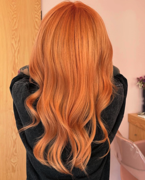 Amy followed this by applying our lighter, warmer Apricot shade onto the ends. This balayage technique created a more natural, sun-kissed finish that blended seamlessly with the Tangerine – adding soft dimension and depth to the overall look.