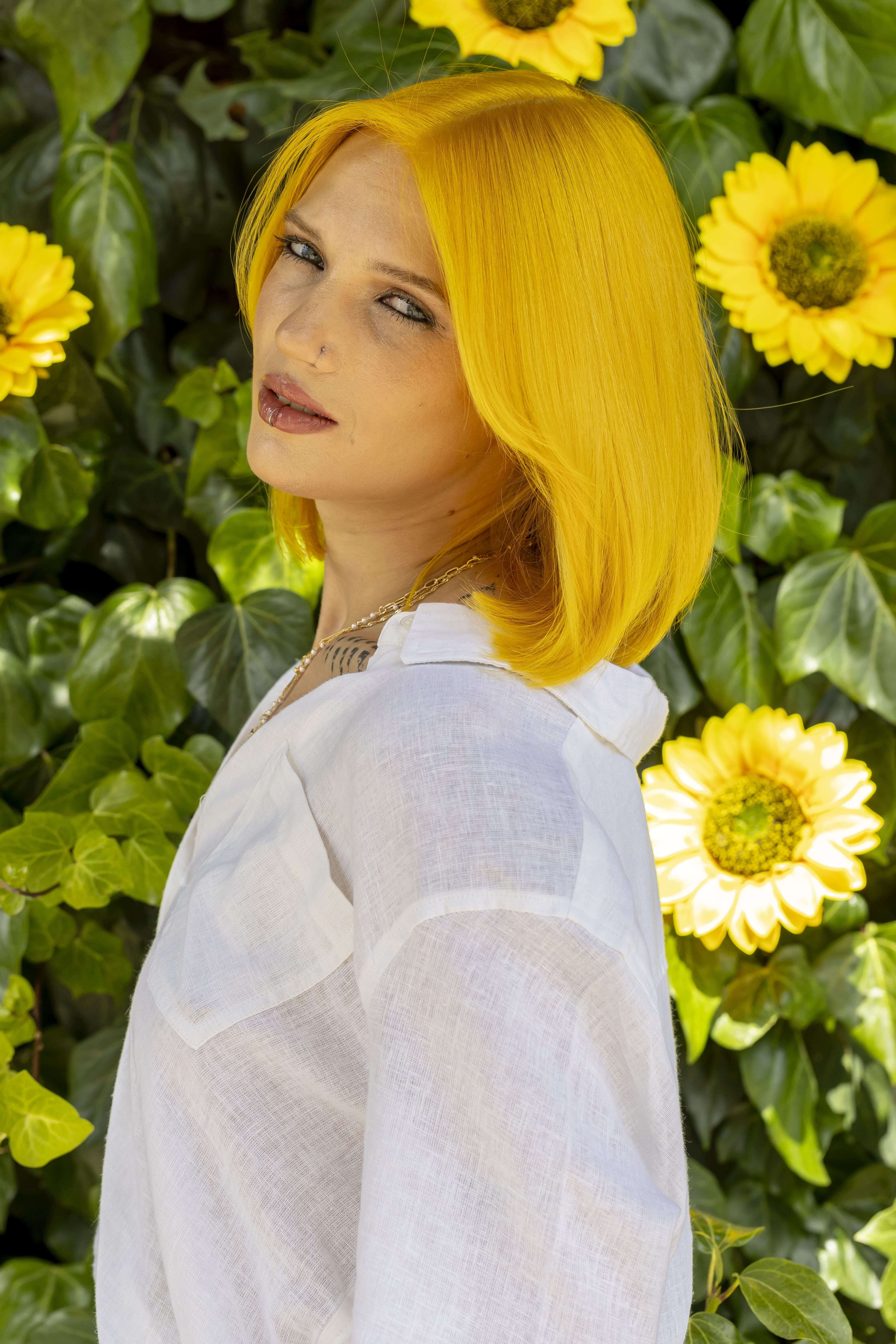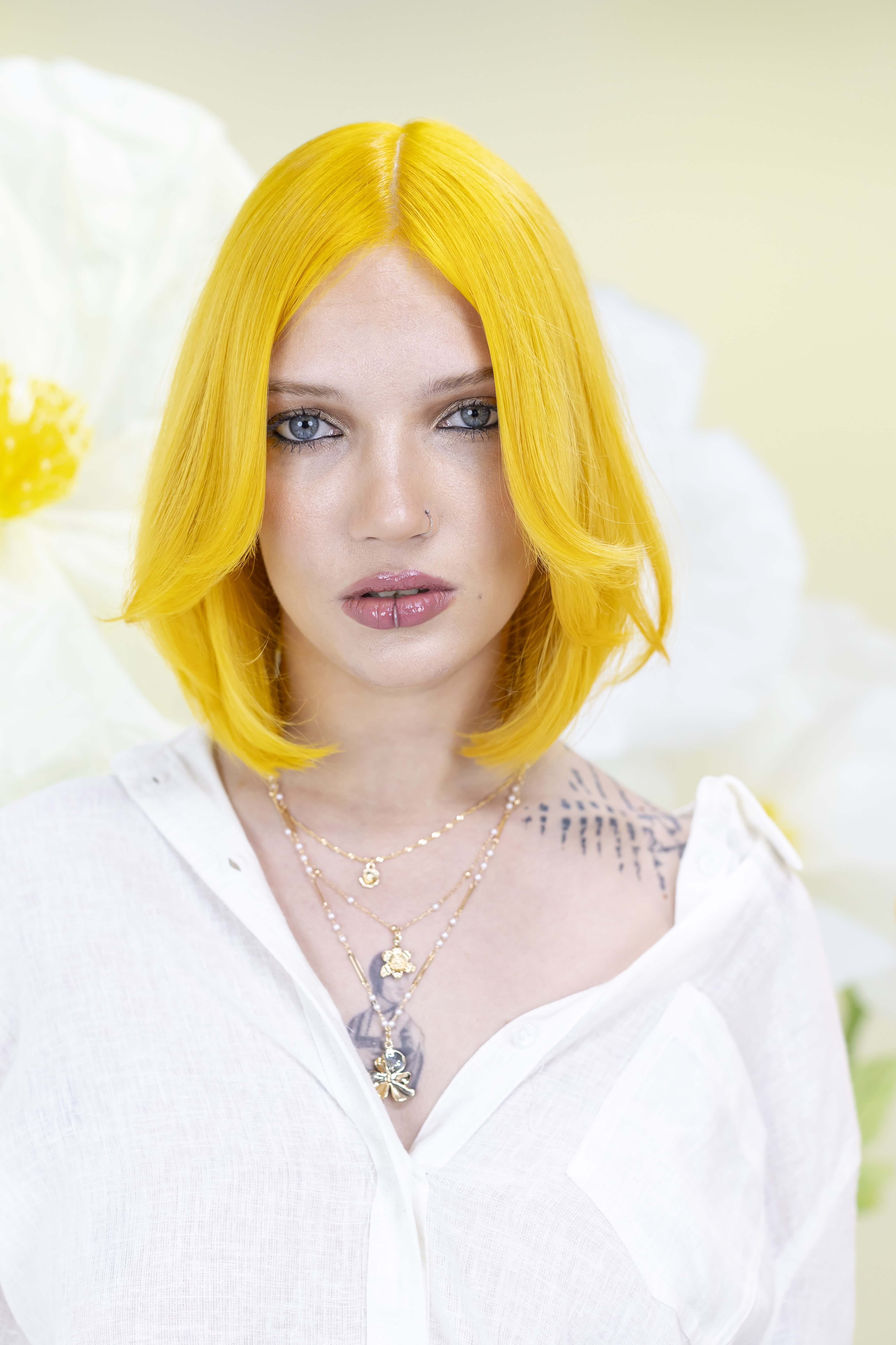 Styled by hair artist and Directions Ambassador Ruth Wardle of Vanity Doll Salon (@vanitydollcolour), Sunshine uses a blend of Bright Daffodil and Sunflower to deliver a burst of brilliant yellow colour from root to ends.
