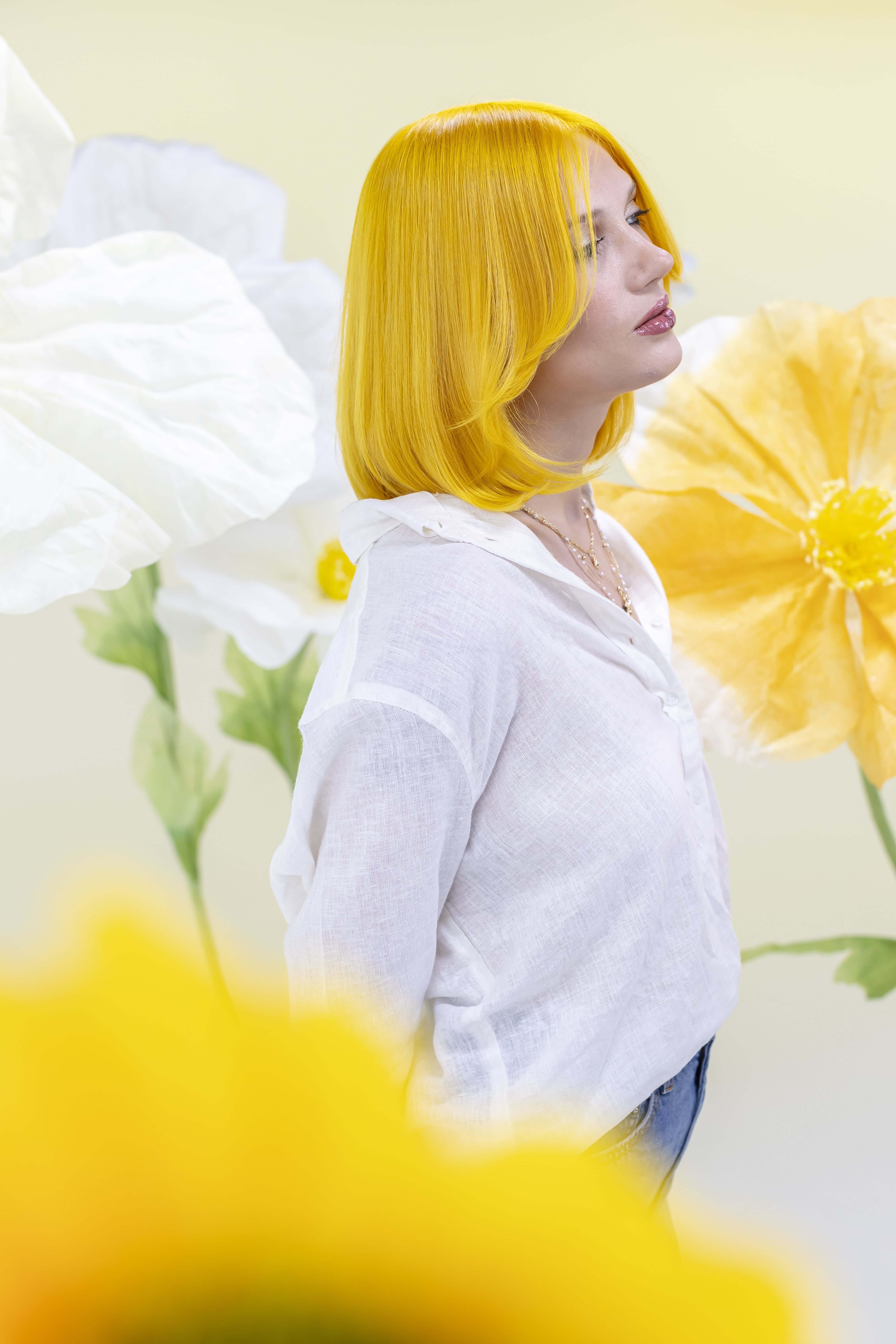 The addition of Bright Daffodil brings out a daring new dimension to the Sunflower seen in Golden Hour, transforming model Charlie’s hair into a sun-kissed masterpiece that stuns from every angle!