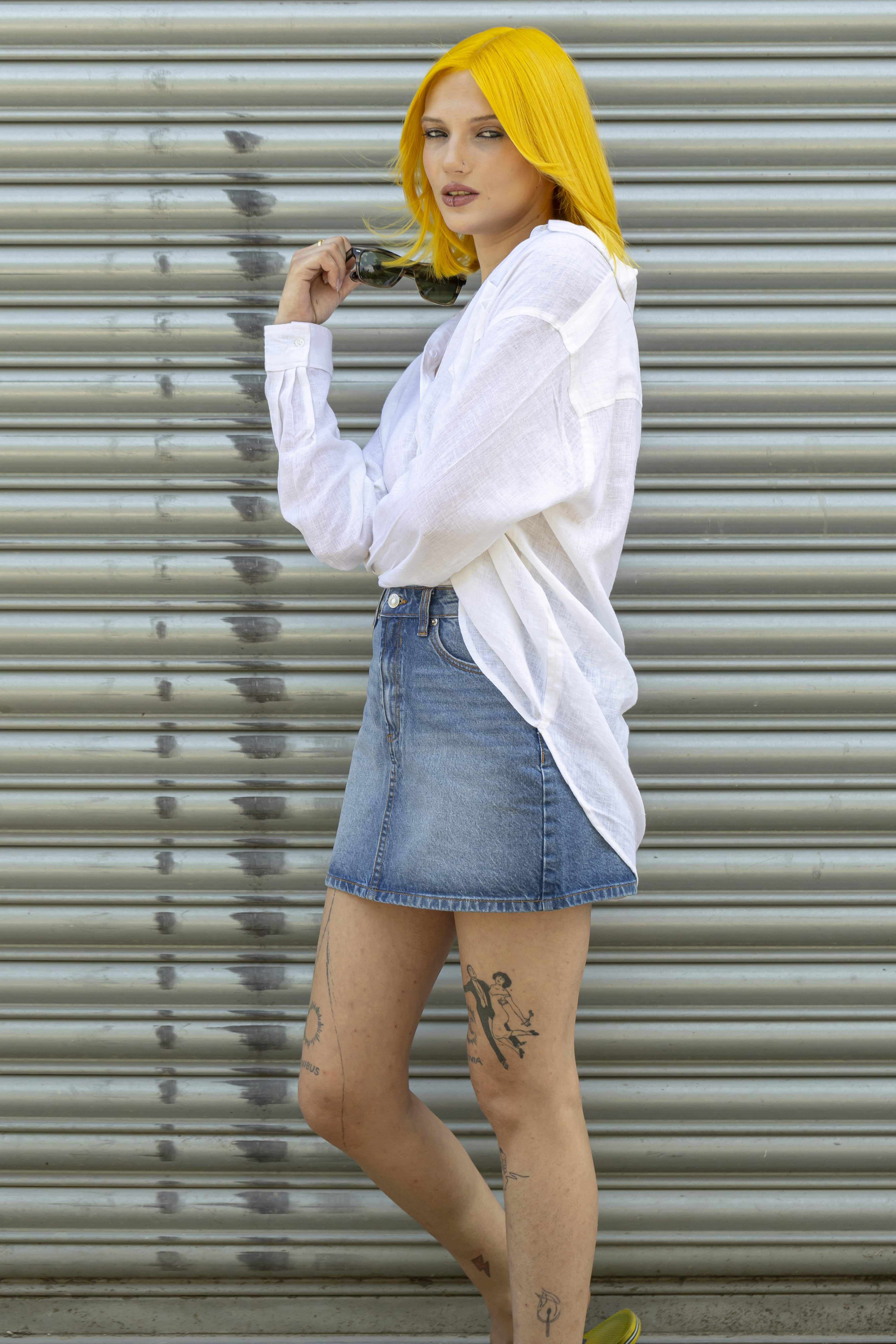 Finally, the fit – a simple yet stylish summer combo of an ASOS denim skirt and white linen shirt, with Maja’s own jewellery accompanied by some layered gold flower necklaces and flower earrings (also from ASOS).