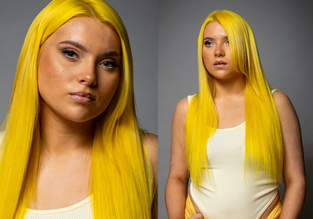 First, for a light-toned colour like yellow, it is highly recommended that you pre-lighten your hair to at least a Level 8 to ensure your chosen colour shines like it’s supposed to. Our specially formulated Hair Lightening Kits give you the best possible base for these vivid colours.