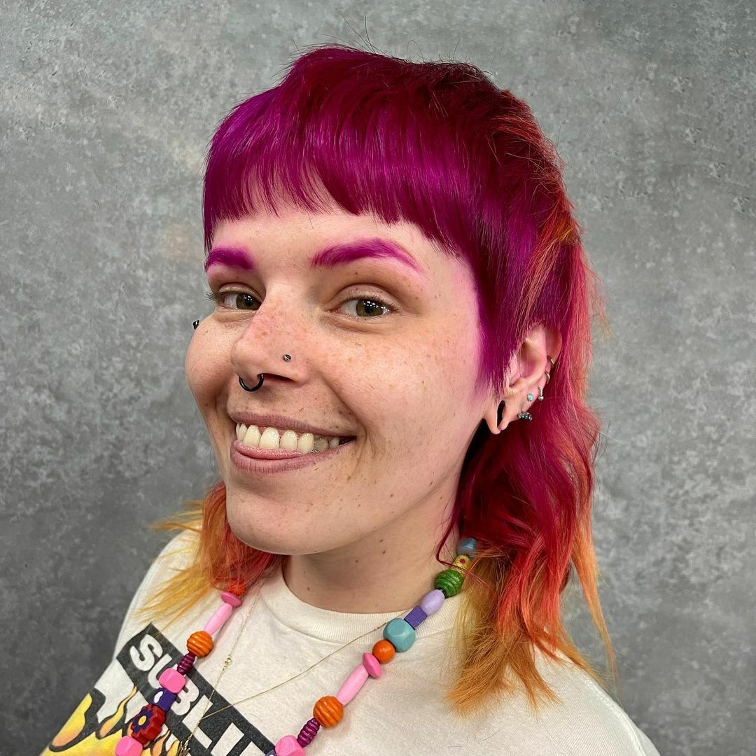 Cerise, Tangerine and Sunflower can be used to re-create this on-trend mullet. We don't condone, but proceed with your brows with caution!