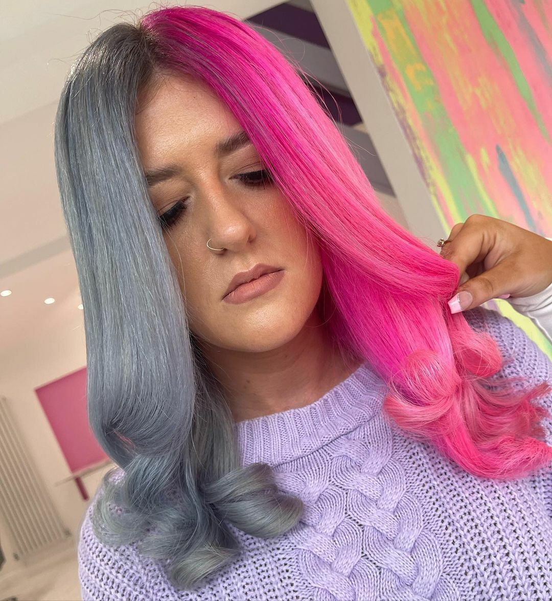 Our ambassadors at Vanity Doll Salon have given us THE perfect early spring inspo, with this Gemini split dye. Using Stormy Grey on one side and Cerise into Carnation Pink on the other, these two opposite tones are too gorgeous together!