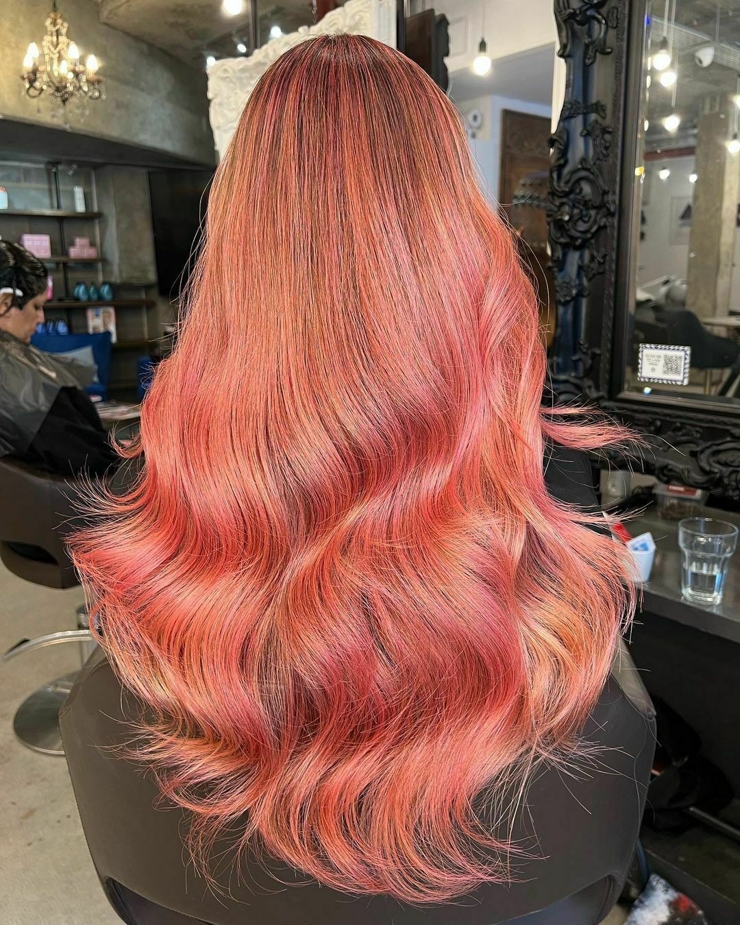 Hair By Poppy says, "My top favourite colour trend of spring 2023 is fire hair, using reds and oranges."